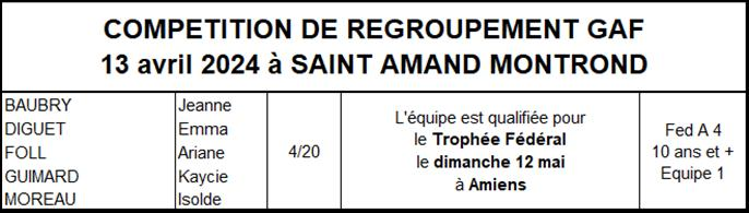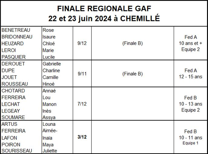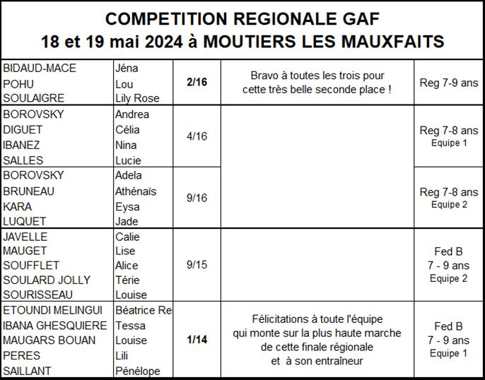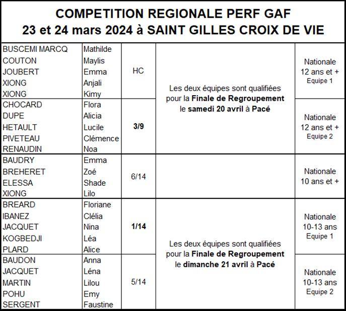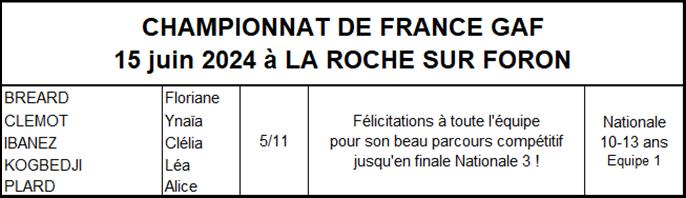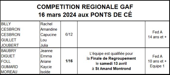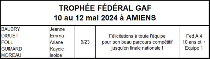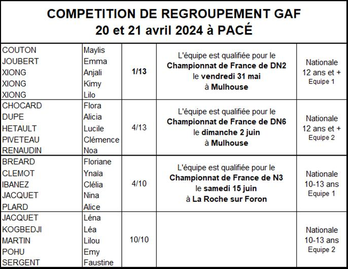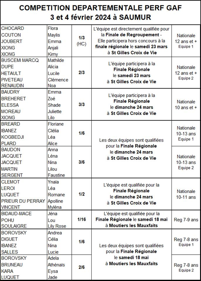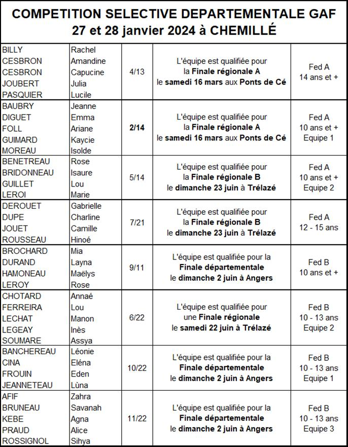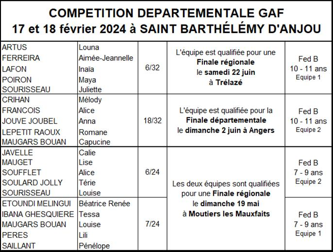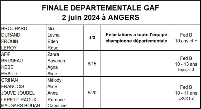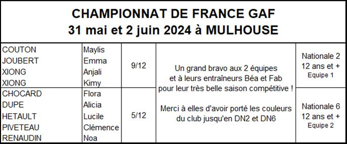 Les résultats équipes GAF saison 2023-2024
