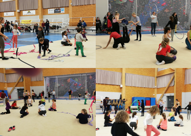 Après trois passages en musique de l’ensemble, le public a pu s’essayer aux différents engins et faire tournoyer cerceaux, rubans, massues et ballons. Des plus jeunes aux adultes, individuellement ou en groupe, chacun a pu découvrir la gymnastique rythmique dans une ambiance très conviviale.